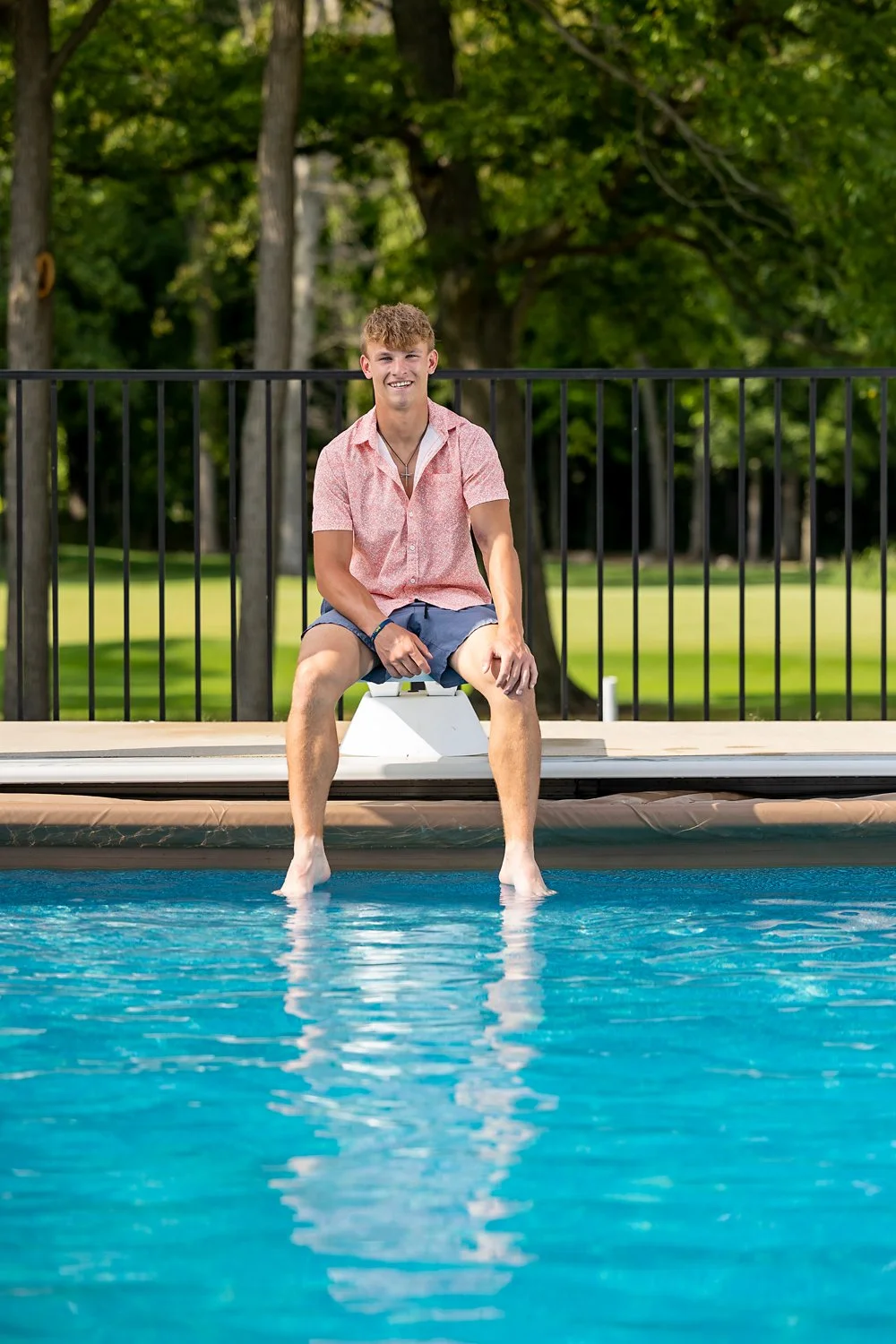 senior photo of a guy near a pool